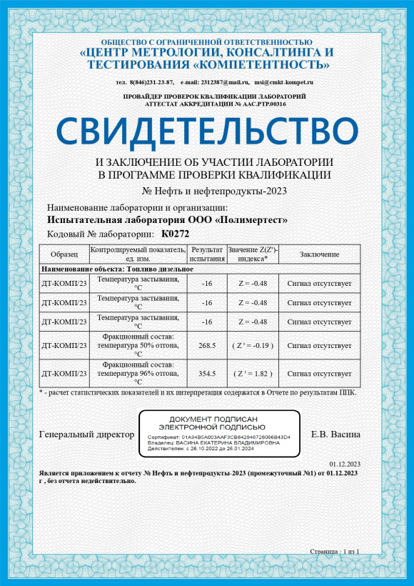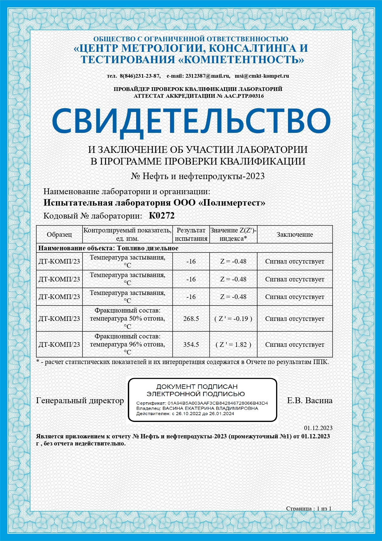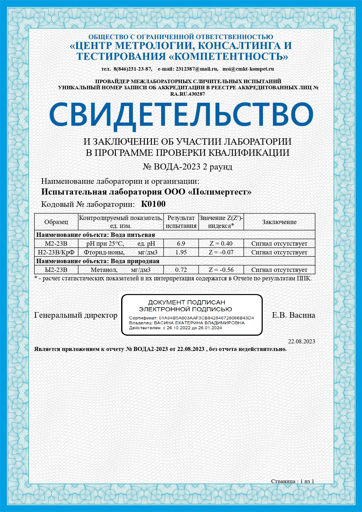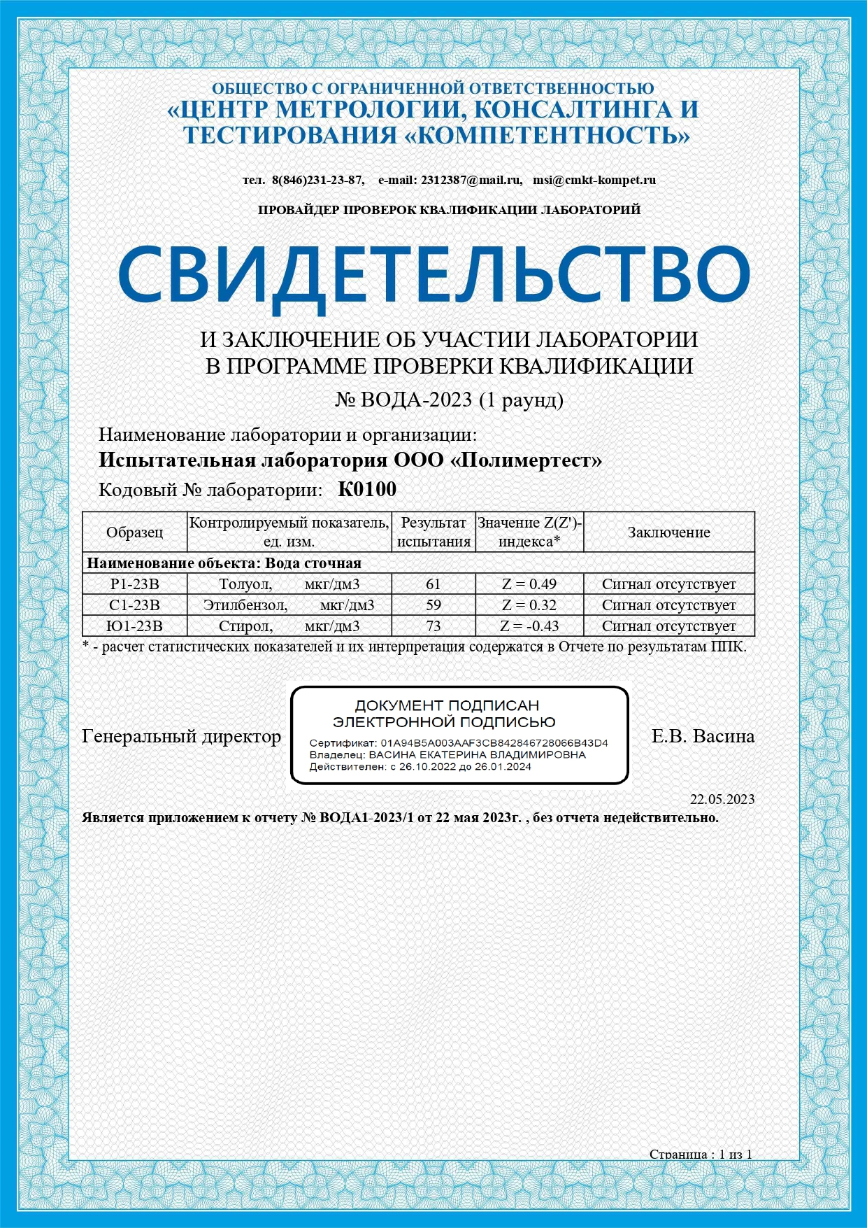 Испытательная лаборатория ООО «Полимертест» имеет уникальный номер записи в реестре аккредитованных лиц РОСС RU.0001.21ХИ04. Проверить актуальность данной информации можно на официальном сайте Россакредитации.