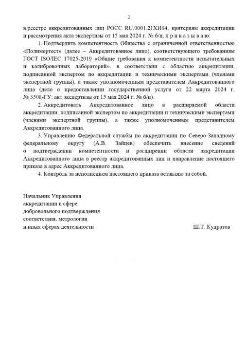 В 2024 году наша лаборатория прошла периодическое подтверждение компетентности, в результате чего была актуализирована действующая и получено расширение области аккредитации.